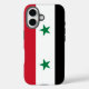 Conception avec le drapeau de la République arabe syrienne, un tribande tricolore horizontal de rouge, blanc et noir, avec deux étoiles vertes au centre