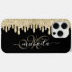 La goutte scintille or et noir élégant Monogram iPhone 15 Coques. Personnalisez les accessoires girly avec votre nom et votre initiale. La fausse parties scintillant qui dégouline légèrement en or glisse sur le noir. Nous utilisons des photos d'étincelles. Veuillez noter que c'est une photo de parties scintillant !