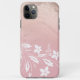 Joli design coque iphone personnalisé avec texture fausse rose en cuivre parties scintillant or, belles fleurs blanches, rose pastel arrière - plan et élégante police calligraphie. Personnalisez le produit avec votre nom ou tout autre texte.