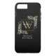 Elégante aquarelle verdure feuille monogramme de nom étui de téléphone avec un monogramme d'or initial sur un arrière - plan noir chic. Conçu par Thisisnotme©