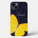Papillon jaune sur un coque iphone arrière - plan damassé noir. Personnalisez ce coque iphone élégant avec votre nom.