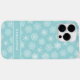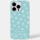 Créez un étui téléphonique de Noël personnalisé unique avec un élégant motif de flocons bleus et blancs turquoises et un modèle pour taper votre nom. C'est une idée mignonne pour les vacances d'hiver.