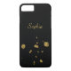 Étui téléphonique classique, chic et simple. Des spangles d'or décorent minimalement ce coque arrière - plan noir. Personnalisez avec votre nom de destinataire. Élégant !