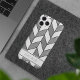 Le coque iphone personnalisé présente un design élégant en chevron avec un motif géométrique en d'os de héron en parties scintillant gris, blanc et faux argent avec des lignes noires.