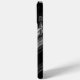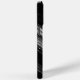 chevron galaxie noire en métal brillant Monogram iPhone 15 Coque. Personnalisez avec votre initiale et votre nom. Abstrait brillant métallique noir et blanc galaxie rayures lignes design numérique. Pas de vrais étincelles !