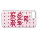 citation inspirante "soyez votre selfie" sur rose pastel avec des coeurs rouges arrière - plan