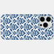 Coques Case-Mate iPhone Feuille Damask Pattern bleu foncé sur blanc