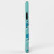 Un étui téléphonique à motif floral sur un arrière - plan bleu clair. La motif est constituée de fleurs bleues et blanches aux centres sombres, de feuilles verts et de petites baies roses. Les fleurs sont disposées de manière dense et superposée, créant un design riche et texturé. Le boîtier du téléphone est brillant et les lentilles de la caméra sont visibles dans le coin supérieur gauche. Le style général est féminin et décoratif, avec une attention particulière portée aux éléments naturels. La palette de couleurs est douce et apaisante, avec un équilibre de tons cool et chauds.
