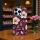 Cette belle oeuvre d'art présente un motif de fleurs blanches crémeuses et douces, aux centres chauds. Les fleurs sont disposées sur un arrière - plan violet profond qui a une sensation tactile et texturée. Les feuilles verts subtils ajoutent un élément naturel, tandis que le contraste des couleurs et le design délicat créent un sentiment d'élégance raffinée.