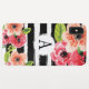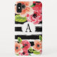Un étui téléphonique élégant que vous pouvez personnaliser! Ce design a des rayures noires et blanches en relief sur imprimé avec de belles fleurs d'aquarelle. Customisez le coque avec votre initiale ou votre nom. Design par Bohemian Girl.