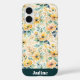 Des fleurs dorées brillantes et ensoleillées avec des feuilles bleus sur un arrière - plan crème rendent cet iPhone lumineux, gai et féminin!