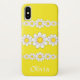 Design marguerrier blanc et jaune avec une couleur arrière - plan jaune clair coordonnée sur ce coque iphone moderne. Customisez facilement avec votre monogramme en couleur accent.