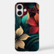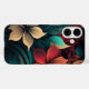 coque iphone aux fleurs tropicales rouge, vert et or