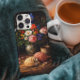 Personalized with elegant initials and a name, this phone case offers a subtle custom touch while allowing the artwork to remain the focal point. The bold contrast between the dark background and colorful florals creates a refined, fine art feel, while the soft textures of the bread and warm tones add depth and character.
