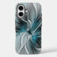 Coques Case-Mate iPhone Floral Fractal Moderne Fleur Abstrait gris bleu