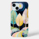 Un tableau éthérée et symbolique représentant une scène forestière stylisée et abstraite. De grands arbres en forme de larme aux branches épineuses dominent la partie supérieure de la toile, dont les toiles sont habillées de douces nuances de rose, de turquoise et d'or, dont certaines présentent des détails chatoyants sur les feuilles d'or. Un corps céleste, un grand orbe aux anneaux concentriques de bleu, de violet et de jaune, est suspendu dans le ciel bleu profond. Au premier plan, un paysage vallonné de collines arrondies dans différents pastels, traversé par un chemin sinueux aux couleurs arc-en-ciel. L'impression générale est celle d'un paysage onirique, mystique, rempli de couleurs vives et de formes géométriques.