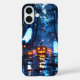 Un fantôme jouant flottant parmi des citrouilles brillants dans une forêt mystique. Un design parfait pour Halloween fantaisiste.