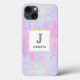 Un étui téléphonique avec un motif arrière - plan abstrait. Les aquarelles rose violet et bleu composent ce design artistique qui présente des formes verticales rectangle sur un arrière - plan doux et marbré. Un carré superposé avec une fausse bordure en feuille d'or, votre texte personnalisé à l'intérieur.