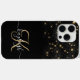 Créez votre propre étui de téléphone étincelant en diamant noir et or personnalisé avec votre monogramme et votre nom personnalisés.