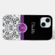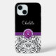 Ce coque de smartphone monogramme à la mode pour iPhone est conçu avec un espace monogramme que vous pouvez personnaliser et beau motif damassé ainsi qu'un graphique numériquement imprimé broche en strass qui ajoute une touche de bling.