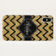 Motif en zigzag or, noir et blanc chevron avec un modèle initial monogramme. Au-dessus du motif chevron se trouve un étiquette noir et blanc avec une lettre monogramme et un modèle de nom pour customiser.