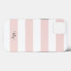 Le coque personnalisé chic présente des rayures rose pâle et blanche avec votre nom, monogramme ou phrase préférée en écriture noire moderne. Le design classique preppy est parfait pour ajouter à la fois style et protection à votre téléphone dans une palette de couleurs pastel tendance.