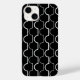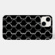 Ce boîtier téléphonique a un design art déco de demi-cercles blancs se connectent avec des lignes sur un champ de noir.