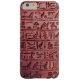 Un iPhone 6 Plus Coque rouge avec des hiéroglyphes anciens gravés sur pierre avec une ligne de fissure montrant.