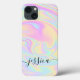 Style esthétique Holographique Élégant Script Signature coque iphone. Personnalisez ce joli design esthétique avec votre nom.