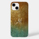 Holographie or et vert mer Parties scintillant Monogramme Coque personnalisé-Mate iPhone 14 Coque peut personnaliser le nom