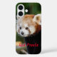 Étui de téléphone portable avec un panda roux sur une bûche enneigée. Vous allez adorer cet étui de téléphone portable avec une photo adorable d'un panda roux assis sur une bûche enneigée. Les mots Panda roux sont imprimés en rouge. Trop mignon !