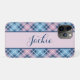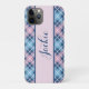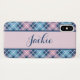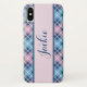Joli rose pastel et bleu plaid motif iPhone X Coque personnalisé avec votre nom. Changez le nom vous-même lorsque vous commandez.