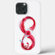 Infinity symbole of continuous stream of red pouring into glass glass glass on white background.