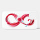 Infinity symbole of continuous stream of red pouring into glass glass glass on white background.