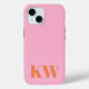 Étui pour iPhone 15 avec initiales de monogramme rose orange moderne personnalisées