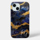 Coques Case-Mate iPhone Initiales en marbre Abstrait bleu or