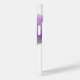iPhone 14 coque est montré dans une couleur blanche avec un design d'impression florale violet. Customiser ou acheter tel quel.
