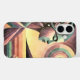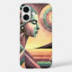 Graphisme abstrait coloré d'une femme ornée de fleurs, de soleil et d'étoiles, avec un effet aquarelle et des textures.