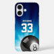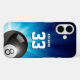 Coque unique avec boule de jeu de billard sur arrière - plan bleu éclairé avec texte personnalisable. Avez-vous une passion pour la piscine ? Faites un grand cadeau pour le joueur de billard ou le fan.