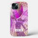 Coque iphone de volleyball féminin avec graphismes de volleyball girly colorés en rose, violet et or et joueur de volleyball féminin sautant sur le net avec nom personnalisable par katz_d_zynes ::: également disponible pour d'autres modèles iPhone ainsi que les appareils iPad et Samsung ... pour d'autres appareils, sélectionnez votre type de périphérique dans la section "Options de style" sur cette page .. pour obtenir de l'aide sur la personnalisation, cliquez simplement sur le lien "Demandez à ce concepteur" ci-dessous