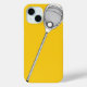 Conception de boîtier de téléphone en crosse jaune avec bâton de gardien de but lax.
