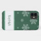 Whimsical and fun Let it Snow Coque-mate à peine Il iPhone 5 Coque en vert foncé avec une cascade de flocons de neige dessinés à la main. Ce coque iphone amusant gardera votre téléphone protégé avec une ambiance de vacances ou d'hiver. Facile à customiser, ajoutez simplement le texte personnalisé de votre choix.