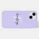 Cet élégant étui de téléphone personnalisé présente un monogramme et un prénom en écriture moderne noir et blanc sur un arrière - plan à la mode lavande.