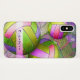 Le coque robuste de volley sportif iPhone pour les filles est grungy mais encore girly avec des volleyballs multicolores lumineux avec des panneaux rose et violet chaud, jaune et citron vert et un look grippé abstrait arrière - plan - customiser avec son nom - par katz_d_zynes