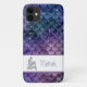 iPhone 11 Coque * Mermaid Scales Silver Parties scintillant rose Lavande Turquoise Blue iPHONE 11 COQUE avec scintillement Mermaid Scales ainsi qu'une silhouette de sirène d'Parties scintillant argentée assise sur une roche.