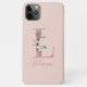 Chic et girly initial L, coque iphone monogramme pour 11 Pro Max et beaucoup d'autres modèles. Le design à la lettre fleurie comprend une lettre L rose parties scintillant agrémentée d'un joli bouquet d'aquarelle de corail rose et d'ivoire avec feuillage. Votre nom est écrit en caractères de caractères manuscrits roses et le modèle de nom est configuré pour vous permettre de personnaliser. La conception a une couleur arrière - plan douce rose pâle (pour éditer, cliquez sur "personnaliser" et entrez l'outil de conception). Parcourez notre magasin pour trouver d'autres initiales.