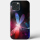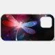 Lumineuse, volante, libellule rouge, avec des ailes transparentes et détaillées sur arrière - plan sombre, nocturne, lumineux avec plantes tropicaux et lucioles. libellule rouge.