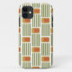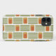 Ce boîtier téléphonique a un design moderne du milieu du siècle fait de cinq lignes vertes et un rectangle arrondi doré avec un rectangle arrondi orange répété à travers le design.