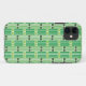 Ce boîtier téléphonique a un design moderne du milieu du siècle de lignes verticales vertes avec des rectangles au-dessus, répété sur le design.