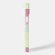 Magnifique motif contemporain jaune citron clair, vert pomme pastel, et clair framboise rouge rose pâle rayures. Avec place pour customiser ou personnaliser avec un nom, monogramme ou initiales de votre choix. Design hipster orné, funky, moderne et fantaisiste pour l'élégante fashionista artistique ou art de mode diva, branché, style rétro vintage, ou amoureux de motifs géométriques qui veut protéger leur téléphone de la poussière et la saleté, l'usure et la déchirure. Cette conception est disponible en coques de téléphones cellulaires Apple iPhone 6, 7 et 8 Plus, 10 ou X, XR, XS, 11, 12, 13 Mini, 14, 15 Plus et Pro Max. Montrez votre style, regardez à la mode, et sentez élégant avec un design unique sur un accessoire mobile de votre choix.